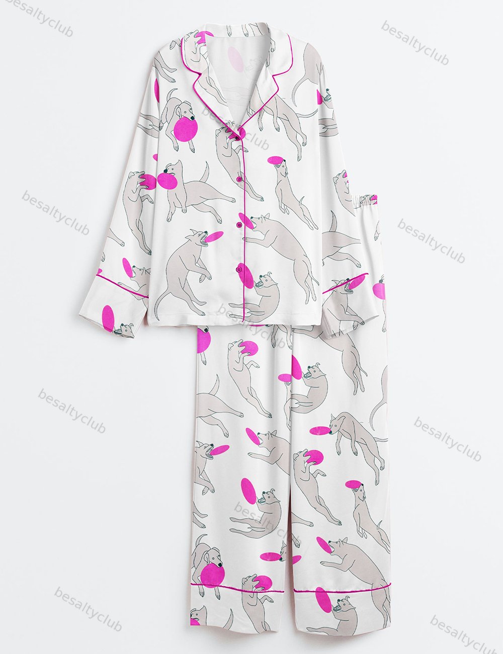 Dogs Frisbee Long Sleeve Satin Pajama Set