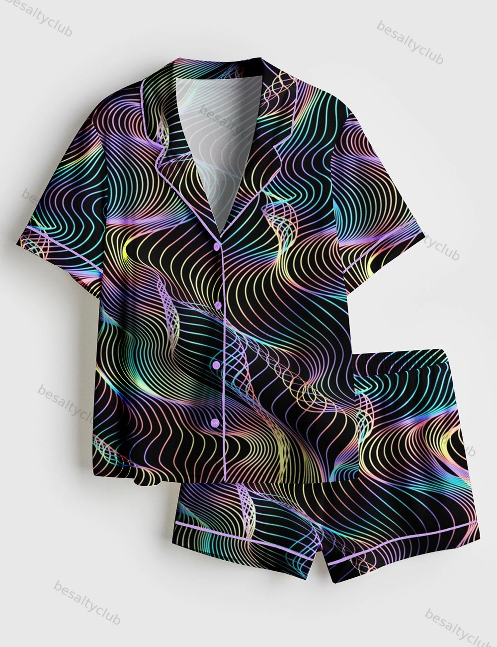 Holographic Waves Abstract Short Sleeve Satin Pajama Set