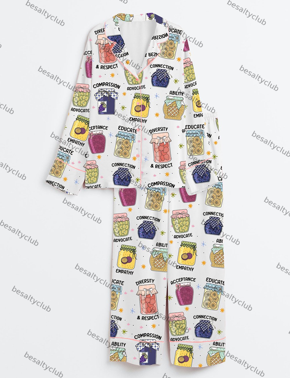 Inclusion Is My Jam Special Education Autism Awareness Print Long Sleeve Satin Pajama Set