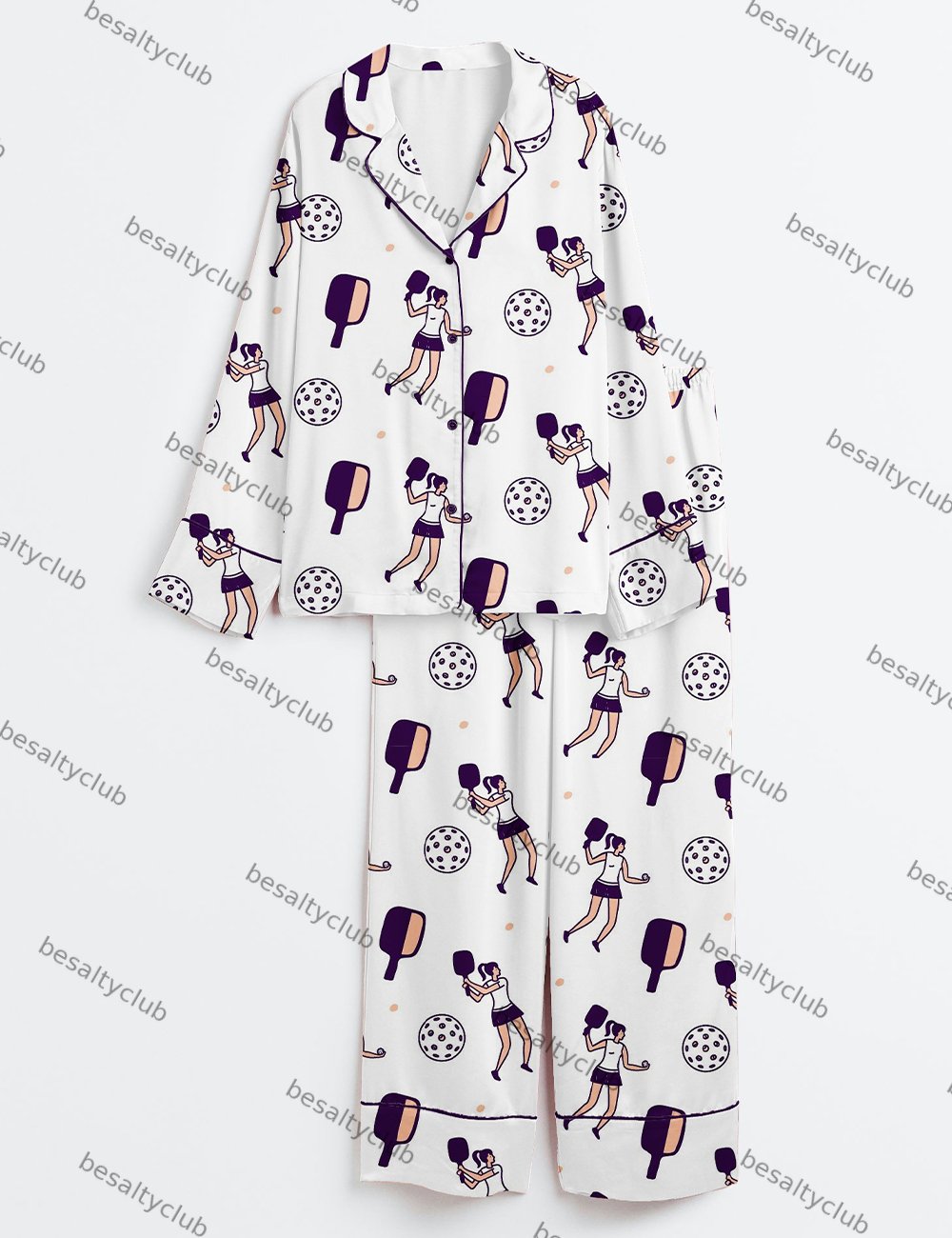 Pickleball Pattern Play Long Sleeve Satin Pajama Set