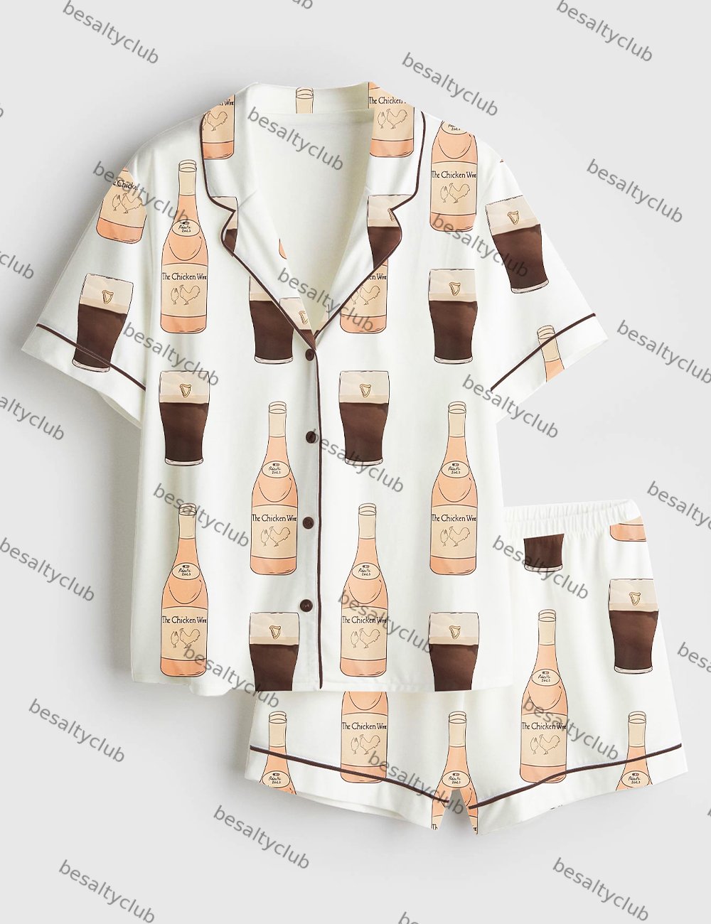 Rosé Chicken Wine Short Sleeve Satin Pajama Set