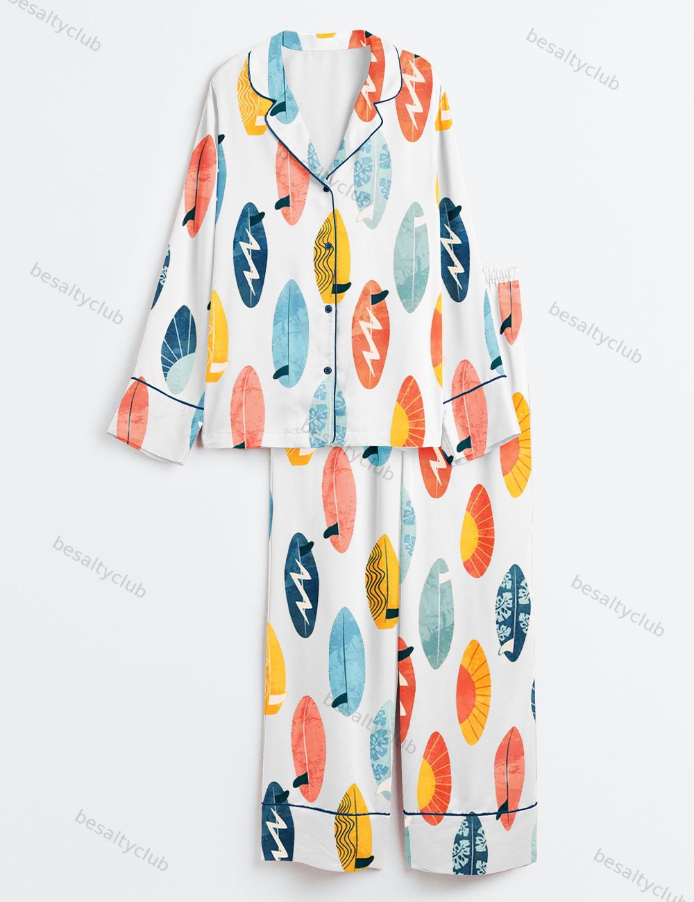 Surfing Board Light Surfing Sports Art Print Long Sleeve Satin Pajama Set