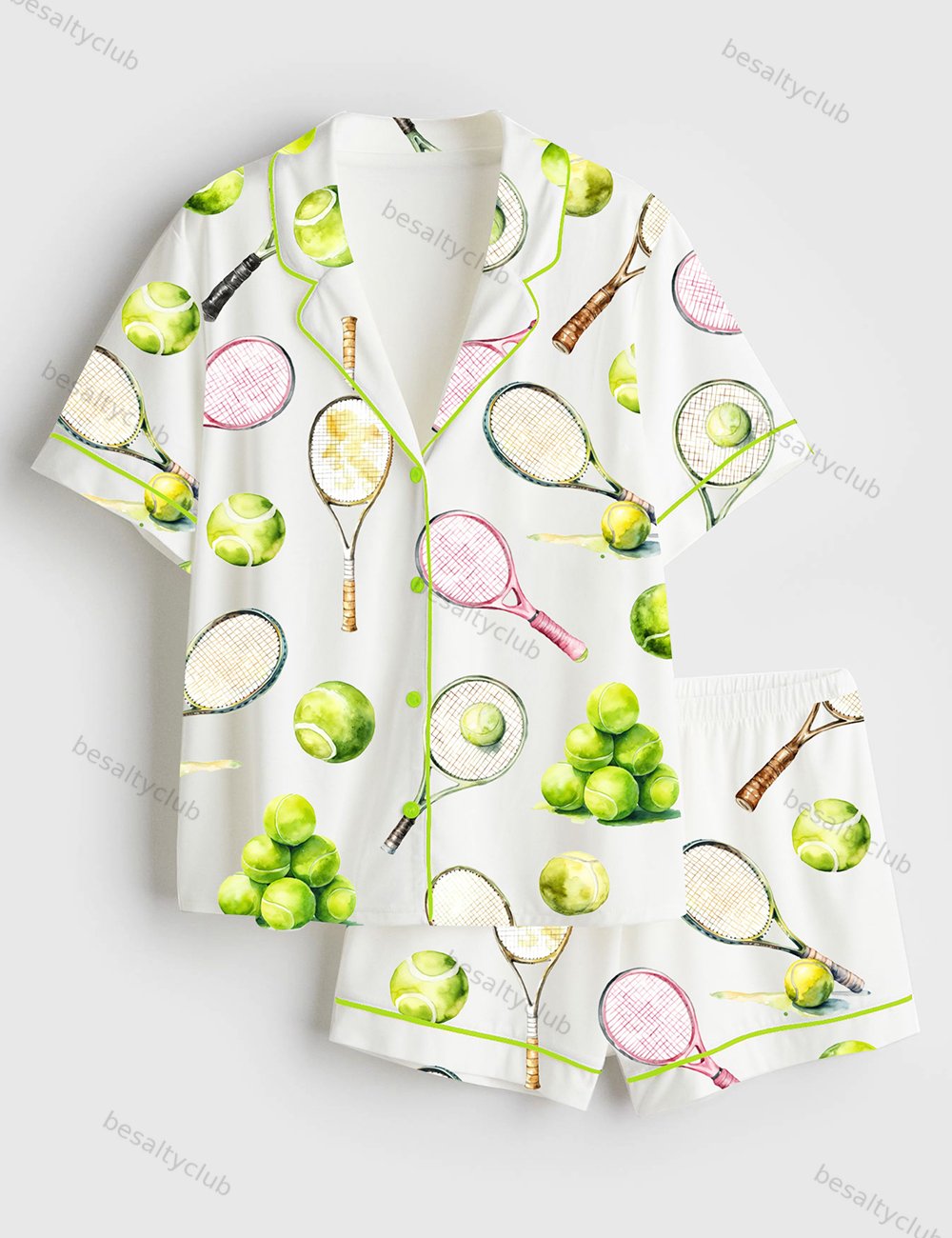 Watercolor Tennis Short Sleeve Satin Pajama Set