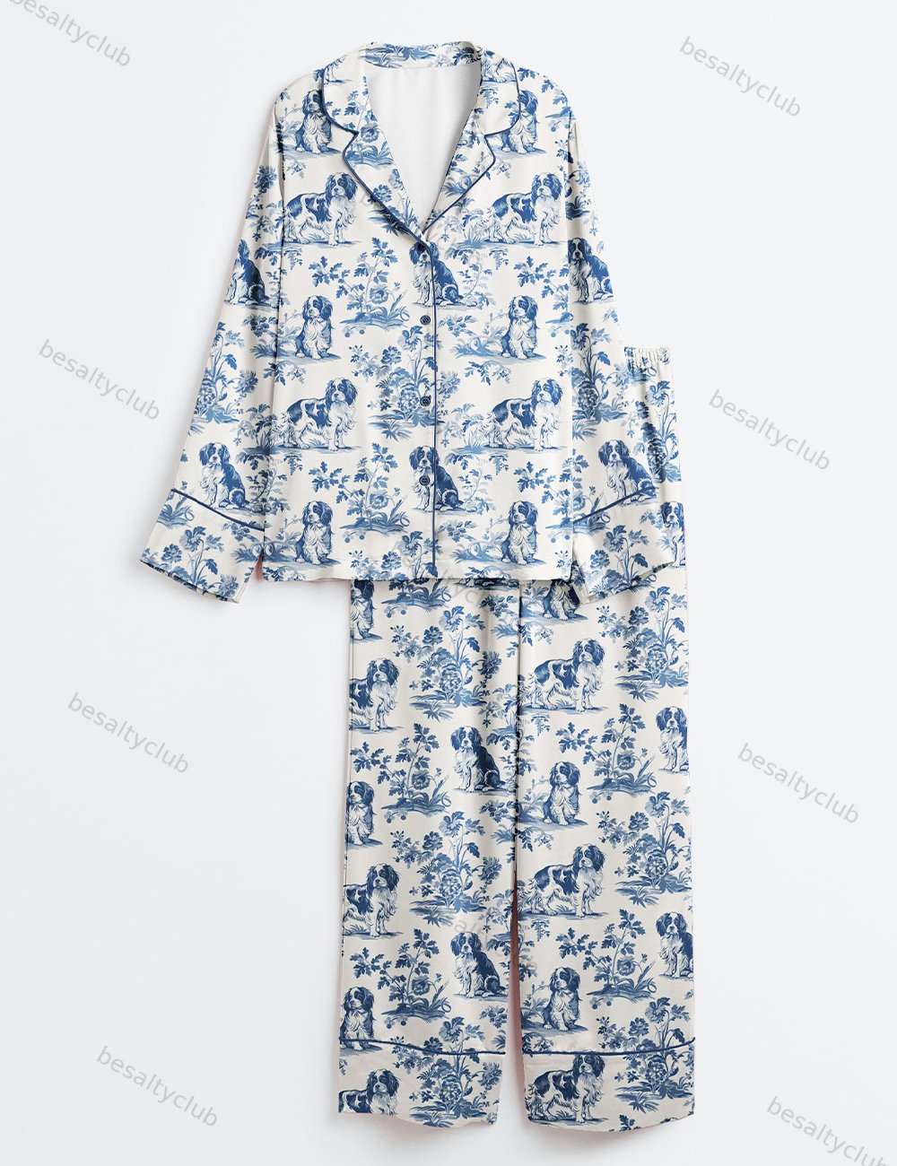 Cavalier King Charles Spaniel French Dog Lover Long Sleeve Satin Pajama Set