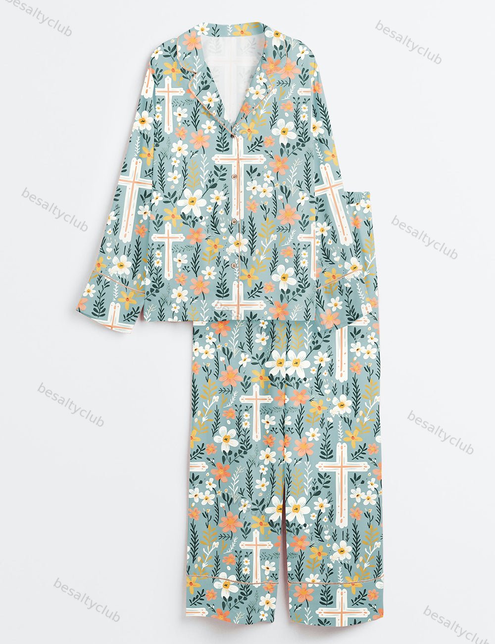 Christian Cross Easter Long Sleeve Satin Pajama Set