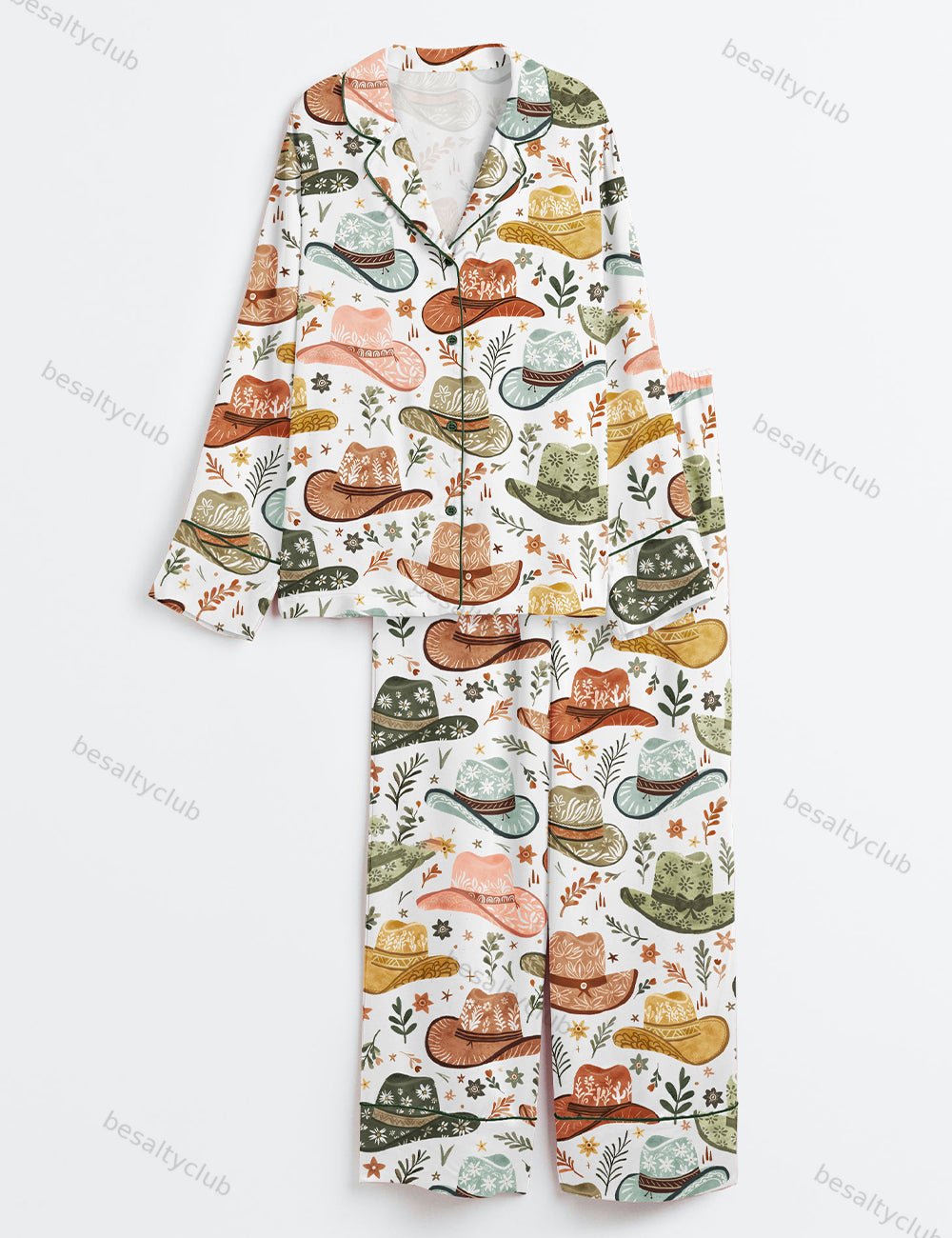 Cowboy Hats Whimsical West Theme Long Sleeve Satin Pajama Set