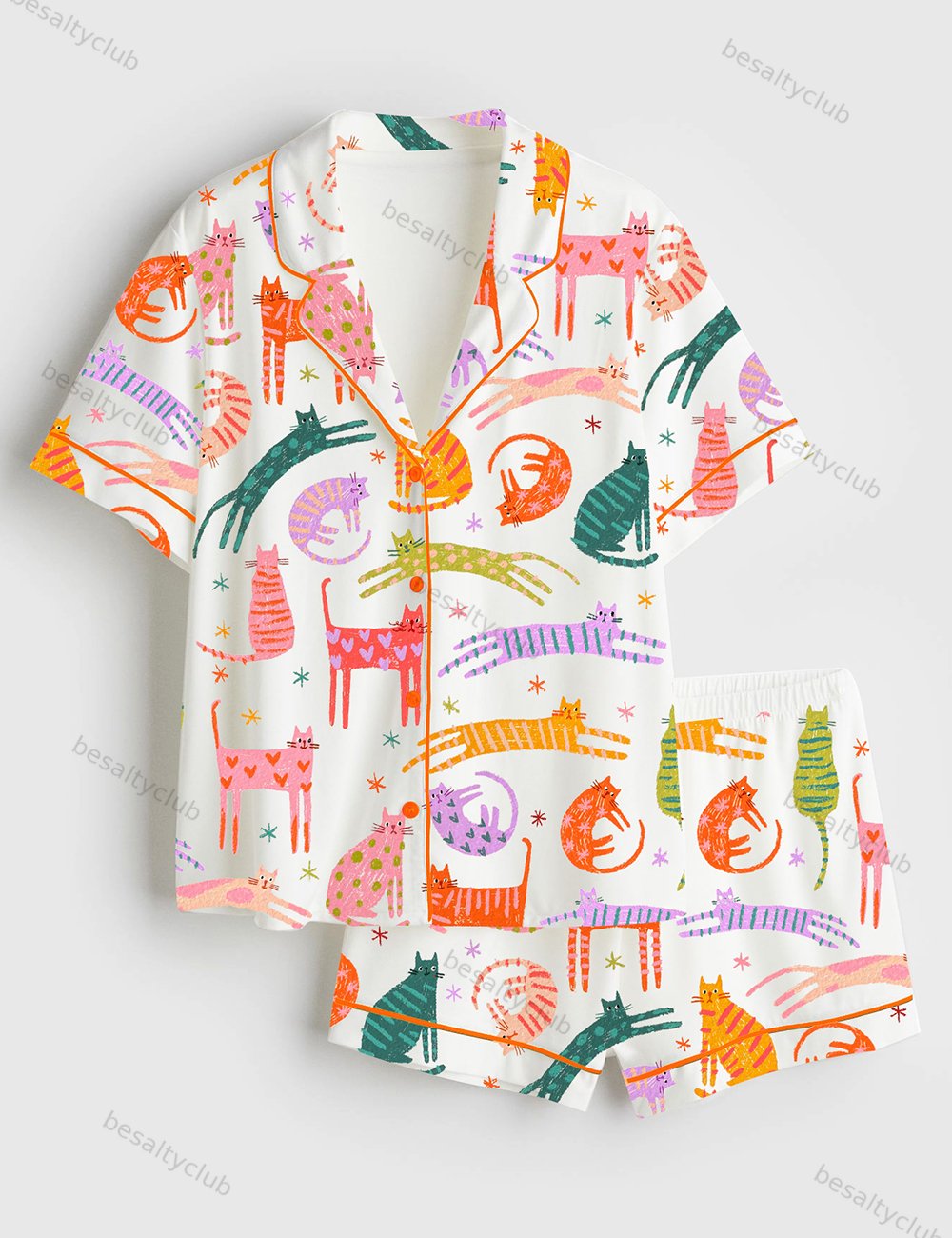 Cute Cat Short Sleeve Satin Pajama Set
