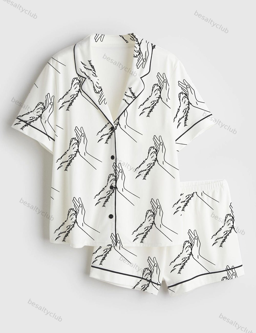 Dog Hands Short Sleeve Satin Pajama Set